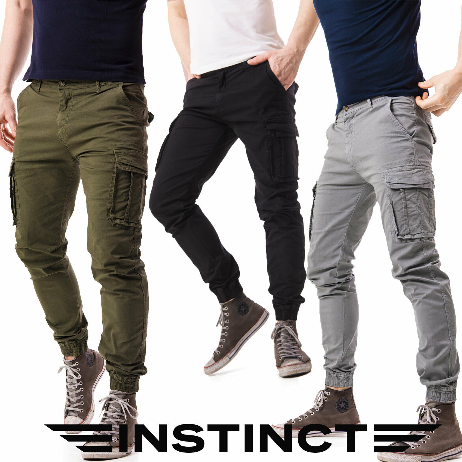 Pantaloni Uomo Cargo con Tasche Laterali Multi-tasche Militari Tasconi Slim Fit