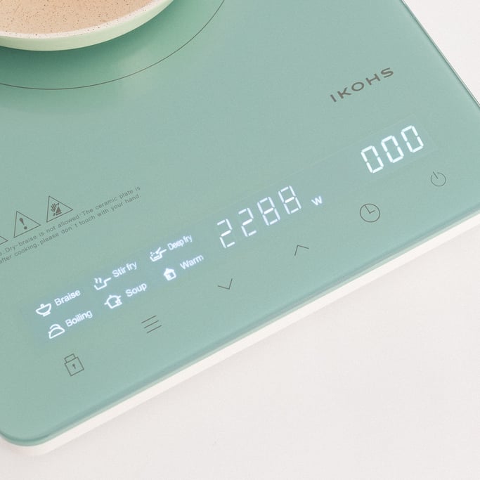 Piano cottura a induzione in vetroceramica da 2200W con vetro ad induzione ultra resistente Grado A + che si adatta al diametro del contenitore, applicando il calore più rapidamente ed evitando dispersioni di energia. Inoltre dispone di 10 potenze di riscaldamento e 6 programmi preimpostati.