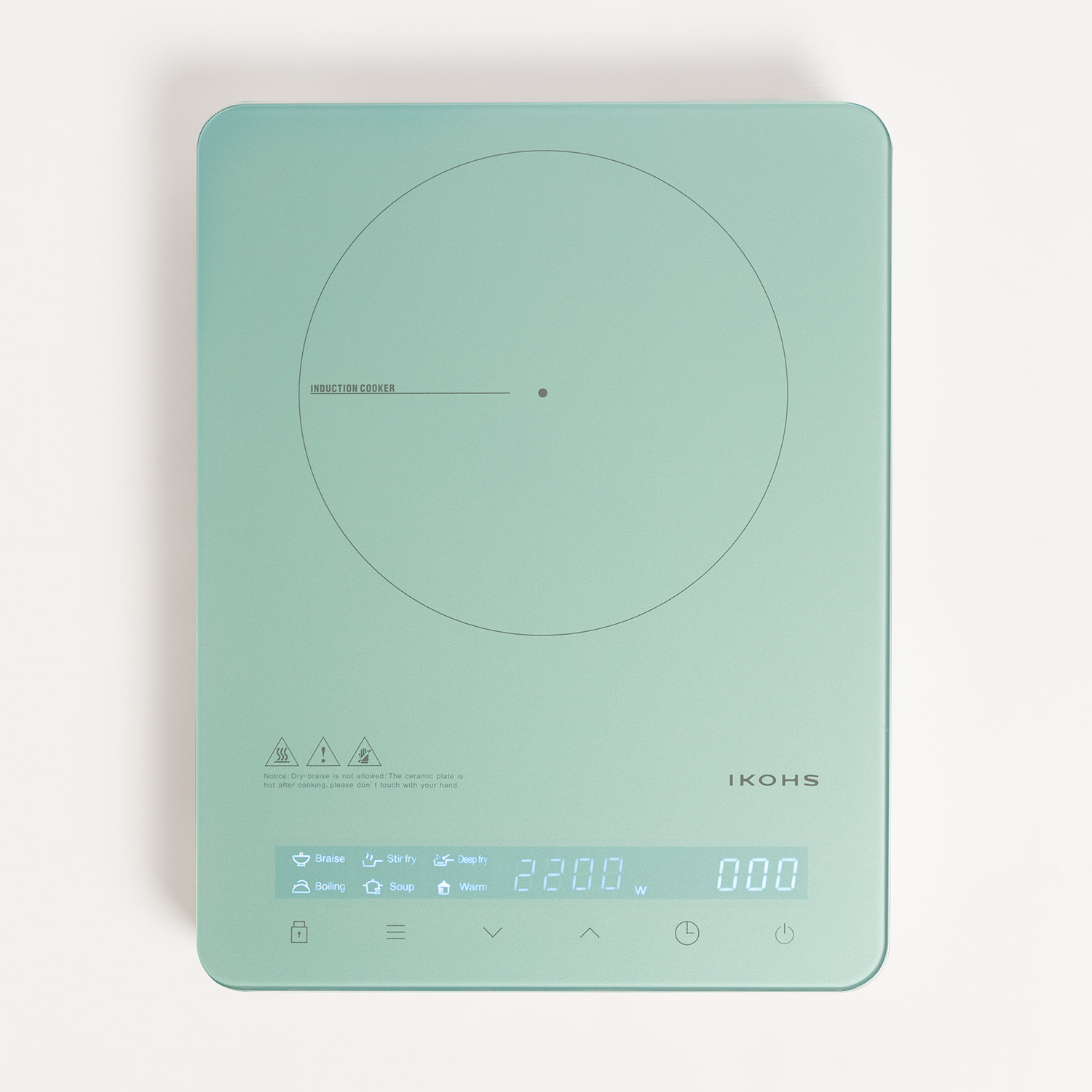 Piano cottura a induzione in vetroceramica da 2200W con vetro ad induzione ultra resistente Grado A + che si adatta al diametro del contenitore, applicando il calore più rapidamente ed evitando dispersioni di energia. Inoltre dispone di 10 potenze di riscaldamento e 6 programmi preimpostati.